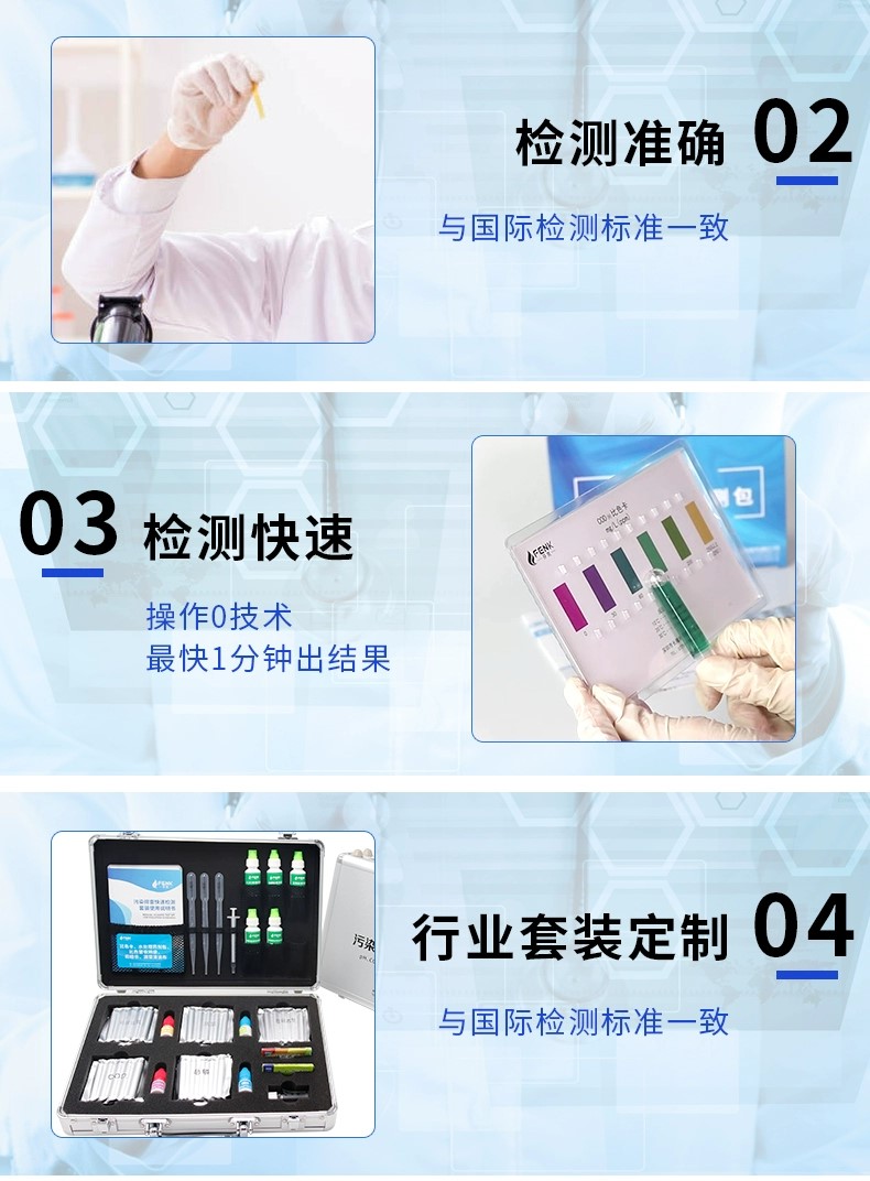 產品簡介:芬克水質快速檢測:批量式樣品檢測,快至1分鐘。準確:依據國標方法開發強抗干擾試劑,申請專利保護。便攜:比色管獨立包裝,可放進口袋。